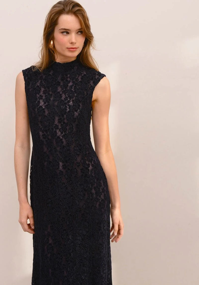 Εκθαμβωτικό μακρύ φόρεμα από δαντέλα, σχεδιασμένο για εμφανίσεις που ξεχωρίζουν. Το Belle Epoque διαθέτει ψηλό λαιμό που προσδίδει κομψότητα, ενώ το αμάνικο κόψιμο αναδεικνύει διακριτικά τους ώμους. Εσωτερική του λεπτομέρεια αποτελεί η τούλινη φόδρα ενώ στο πίσω μέρος κλείνει με φερμουάρ για να εξασφαλίζει άνετη και σταθερή εφαρμογή. Αποτελεί ιδανική επιλογή για επίσημες περιστάσεις ή ιδιαίτερες βραδινές εμφανίσεις, όπου η κομψότητα και η θηλυκότητα έχουν τον πρώτο λόγο.