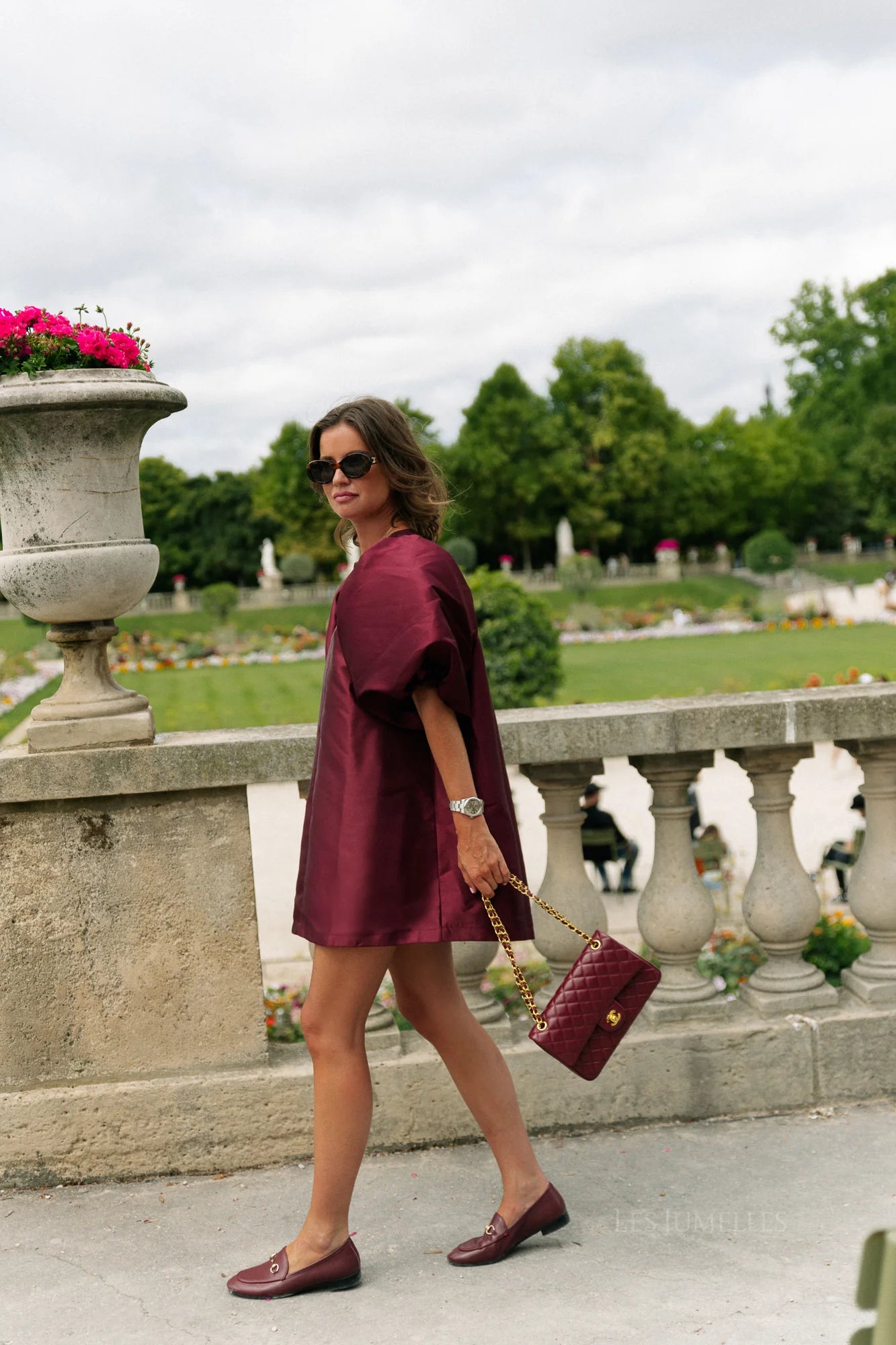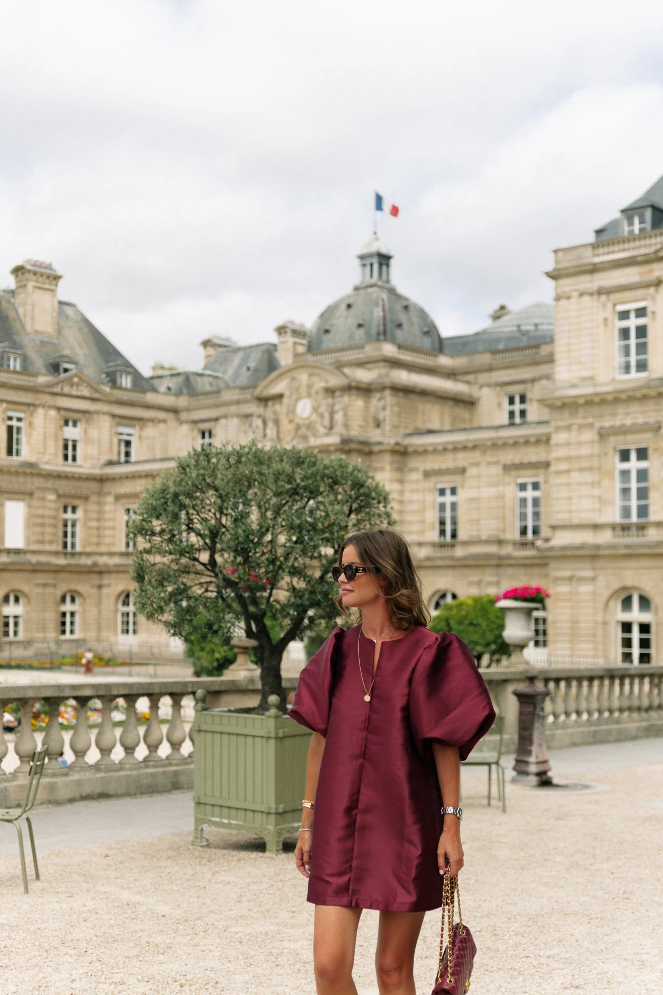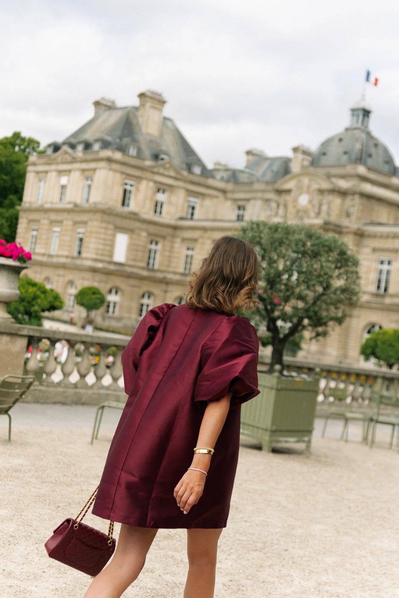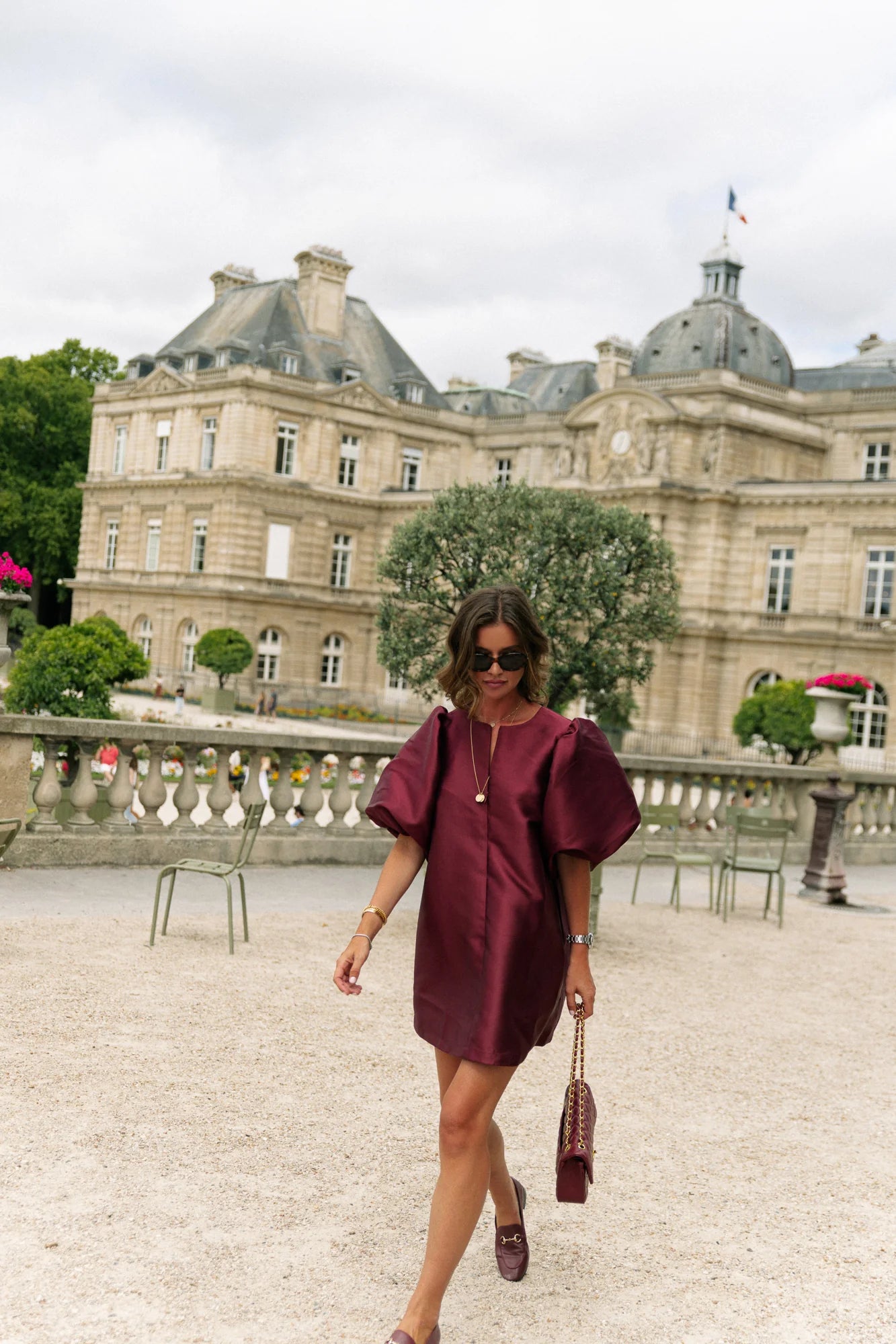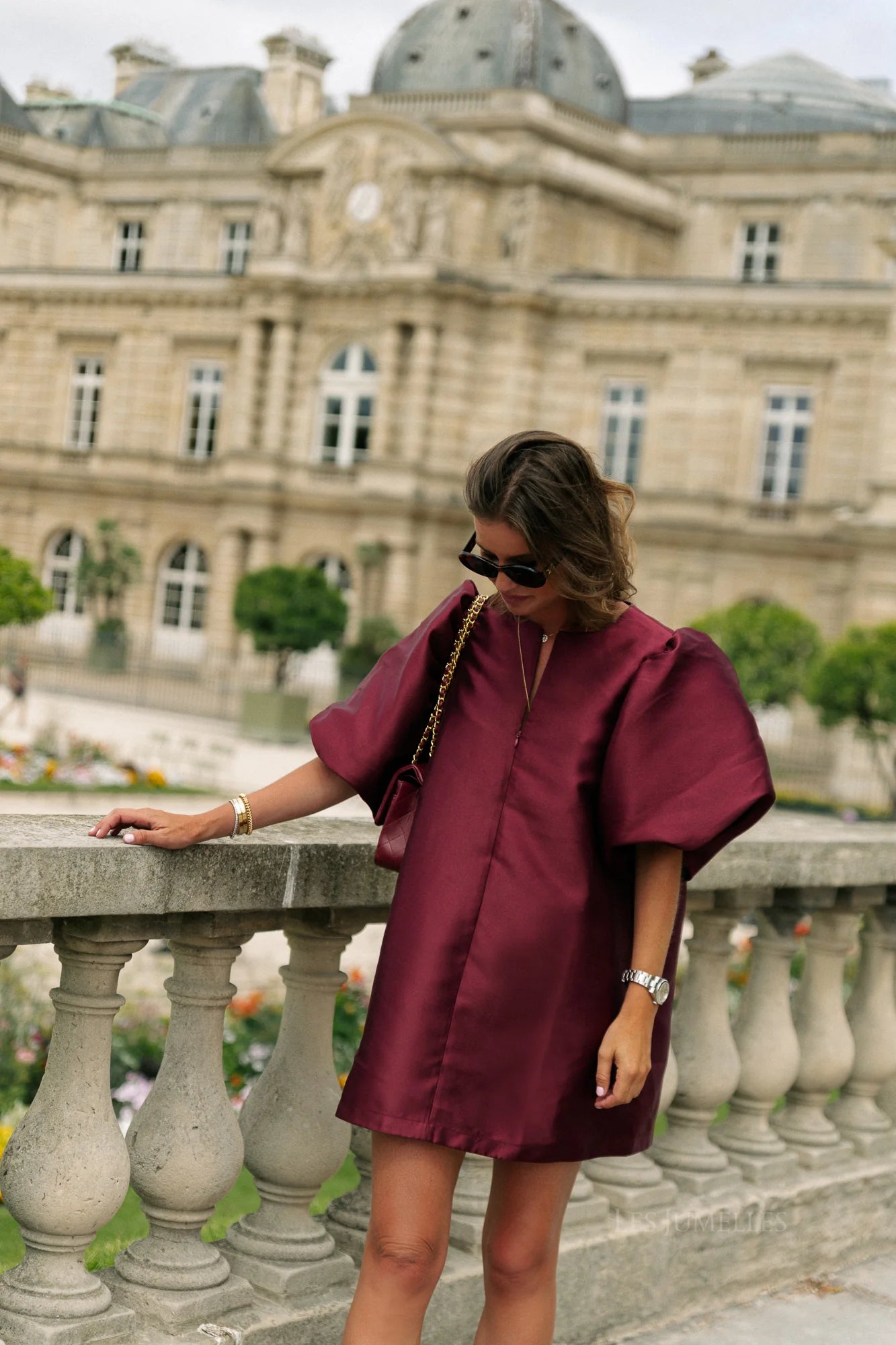 Say hello to our Charlotte dress, a true showstopper from our new collection! Designed with a luxurious, subtly shiny fabric, this dress combines effortless elegance with a modern twist. The voluminous sleeves, with their delicate gathered details, add a playful yet sophisticated flair, while the clean silhouette and front zipper closure create a sleek and contemporary finish.