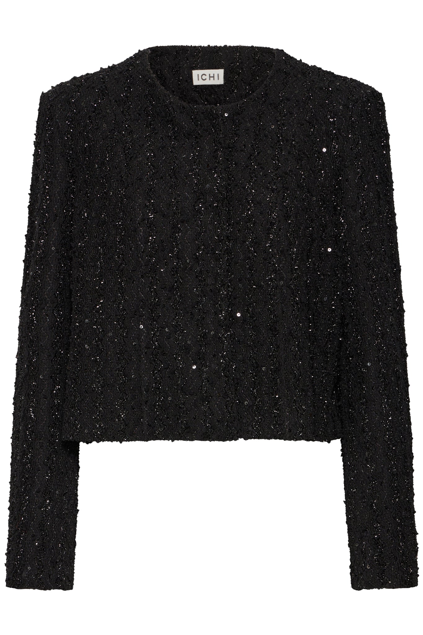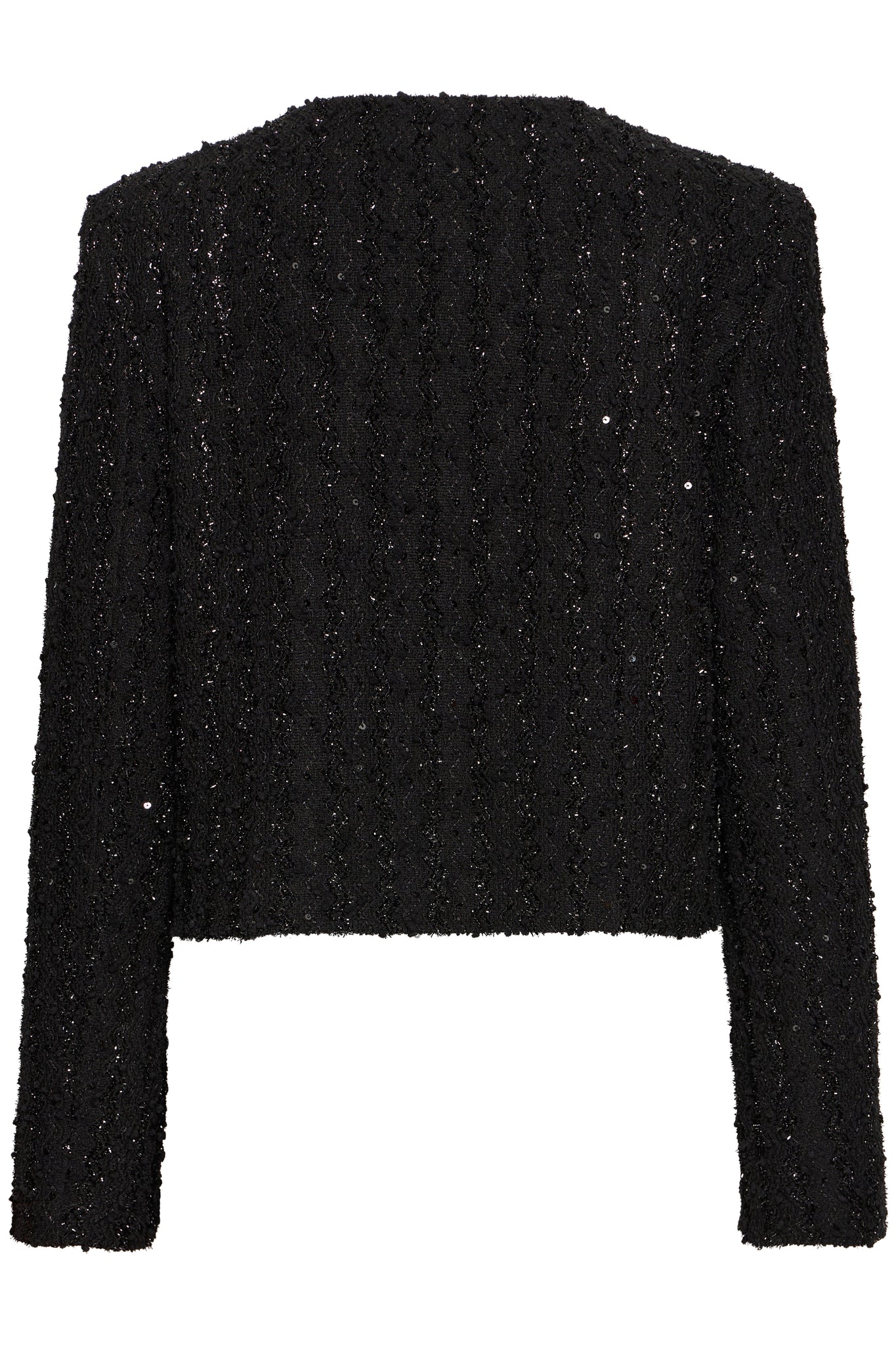 Cropped sequin jacket with a straight silhouette, textured finish, and long sleeves. Features a clean round neckline and subtle sparkle throughout the style.