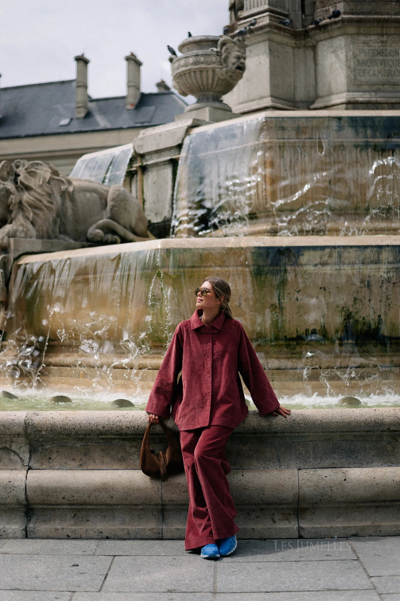These wide-leg velvet pants combine comfort and effortless style with their soft ribbed texture and relaxed fit. The elastic waistband ensures a perfect fit, while the cozy corduroy fabric makes them ideal for both lounging and dressing up. A perfect choice for casual days or a laid-back office look. Available in orchid, navy blue, aubergine, and brick.