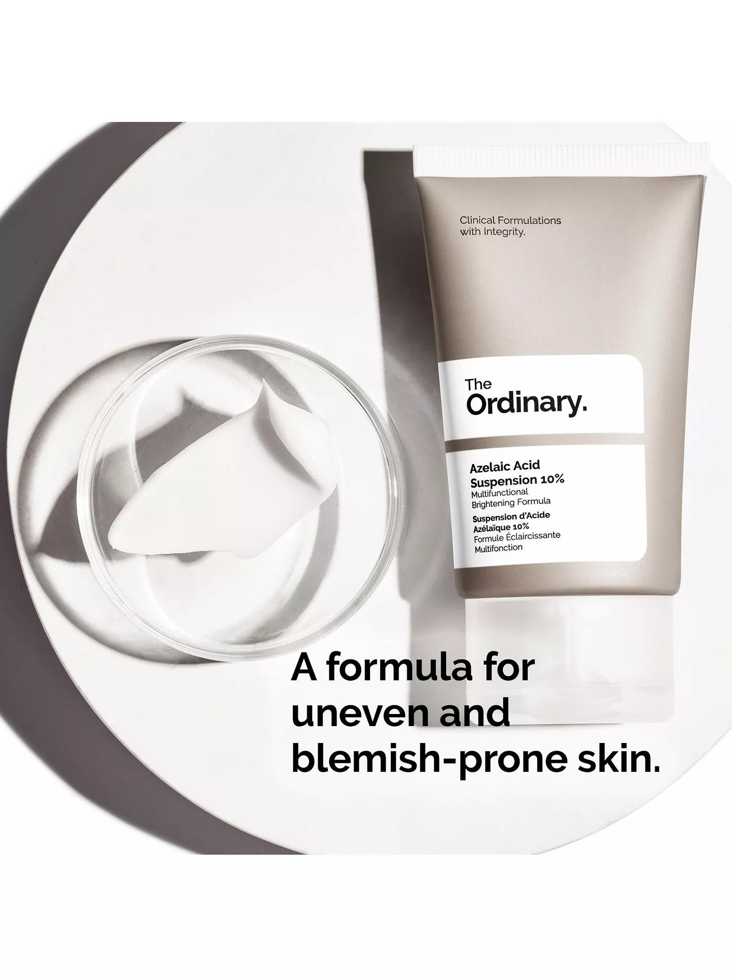 The Ordinary Azelaic Acid Suspension 10% combines effective formula and modern technologies to please you with the desired result. This remedy provides powerful anti-blemish action, eliminating red spots, blackheads, and uneven skin tone. As a result, your complexion becomes smooth, radiant, and well-groomed with minor imperfections less pronounced.